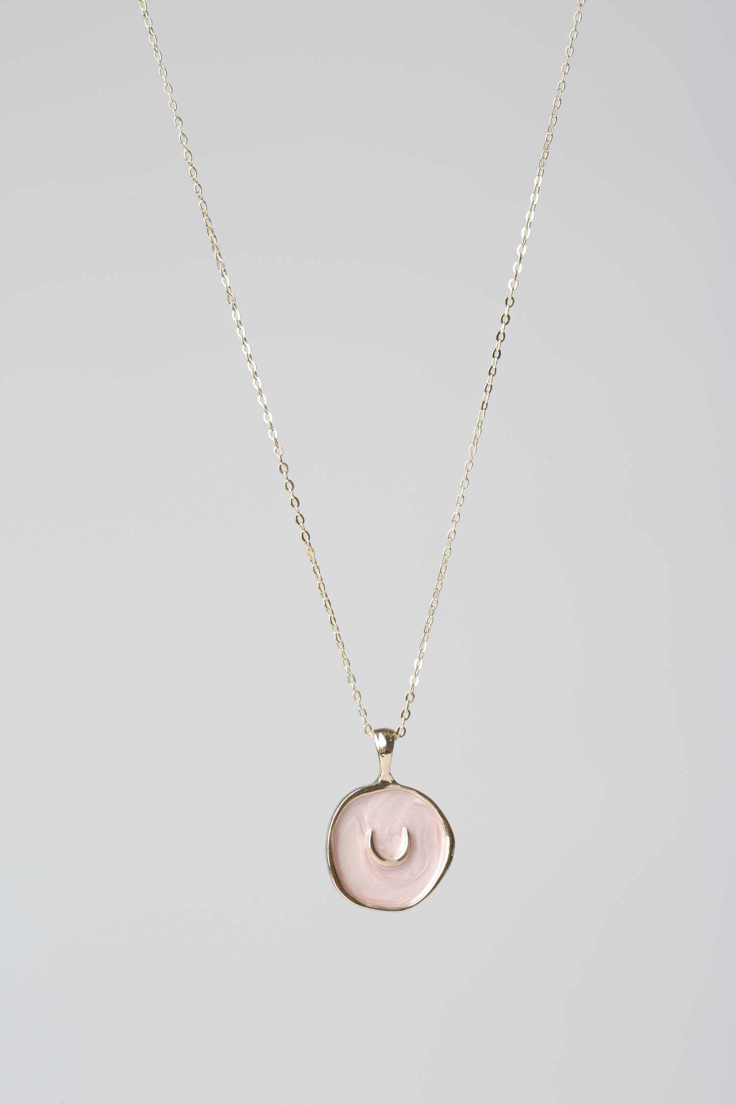 Pink Engraved Moon Charm Necklace